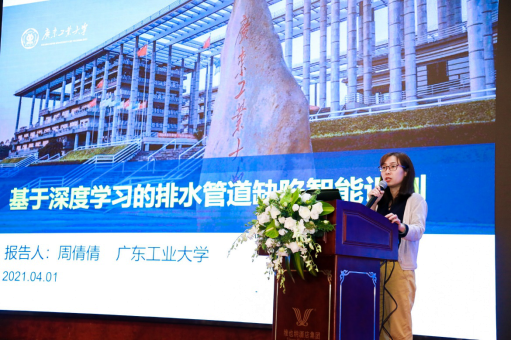 市政工程团队的周倩倩副教授为大会做了“基于深度学习的排水管道缺陷智能识别”报告,获得了良好的反响。