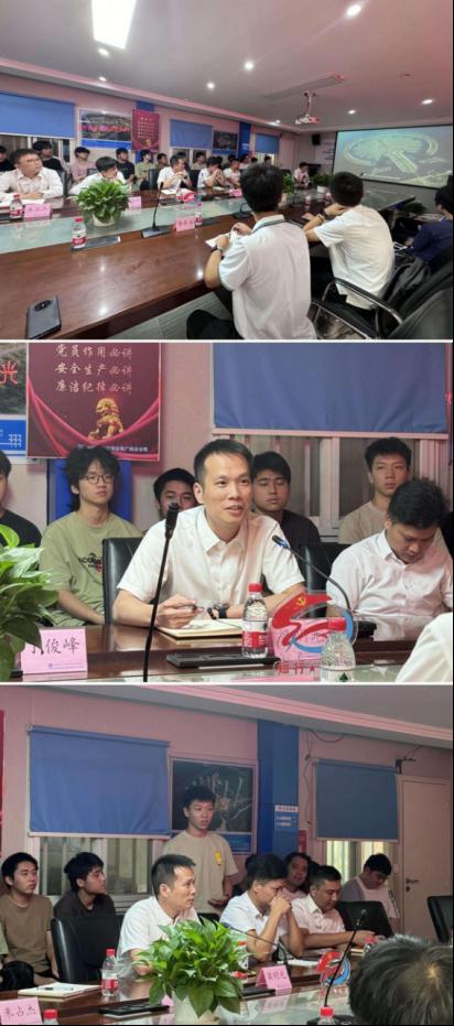 2023级土木工程2班“校友班主任”、工程管理专业2008届校友、中建八局知识城广场项目经理梁明光带领项目部班子成员热情接待了来访师生。校友与师生首先在项目部开展了一场座谈会。座谈会上,项目总工程师向师生们介绍了知识城广场项目的各方面情况。梁明光及项目部副总工程师等就行业情况等主题进行了介绍。梁明光分享了自身从业经历,并对行业情况、择业就业形势等作了分析。他勉励同学们根据自身兴趣、职业认知等条件建立适合自己的职业规划,避免人云亦云。座谈会上同学们踊跃提问,梁明光与项目部班子成员就生涯规划等主题答学生提问,座谈会气氛融洽。