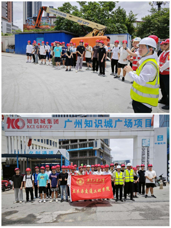 座谈会后,在“校友班主任”、项目部技术人员带领下,师生共同参观了正在建设中的知识城广场四期项目与已建成的知识城广场一期项目。全体师生还在项目部与项目技术人员共同进行了一场午餐会。午餐会上,“校友班主任”、项目部技术人员与全体师生就工程一线实际生活等同学们普遍关心的话题进行了深入交流。