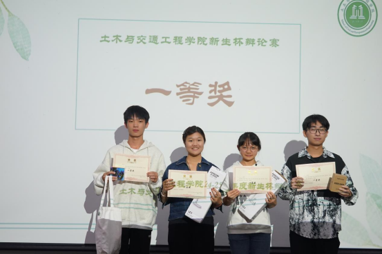 辩论队队长王子林、刘浩辉,校辩论队队长倪勖、张永康,土木院辩论队队长蒋烨凝。