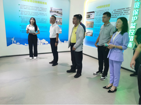 一行参观了环保展厅,考察了园区智慧平台、封闭管理、环境监测、危运车辆管理等智慧化系统建设情况,详细了解石化园区的整体规划和建设布局。