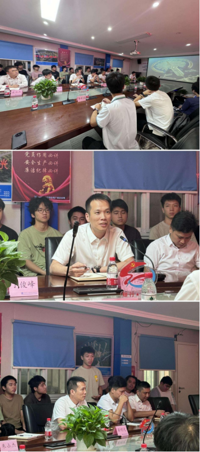 Toptoon 2023级土木工程2班“校友班主任”、工程管理专业2008届校友、中建八局知识城广场项目经理梁明光带领项目部班子成员热情接待了来访师生。校友与师生首先在项目部开展了一场座谈会。座谈会上,项目总工程师向师生们介绍了知识城广场项目的各方面情况。梁明光及项目部副总工程师等就行业情况等主题进行了介绍。梁明光分享了自身从业经历,并对行业情况、择业就业形势等作了分析。他勉励同学们根据自身兴趣、职业认知等条件建立适合自己的职业规划,避免人云亦云。座谈会上同学们踊跃提问,梁明光与项目部班子成员就生涯规划等主题答学生提问,座谈会气氛融洽。