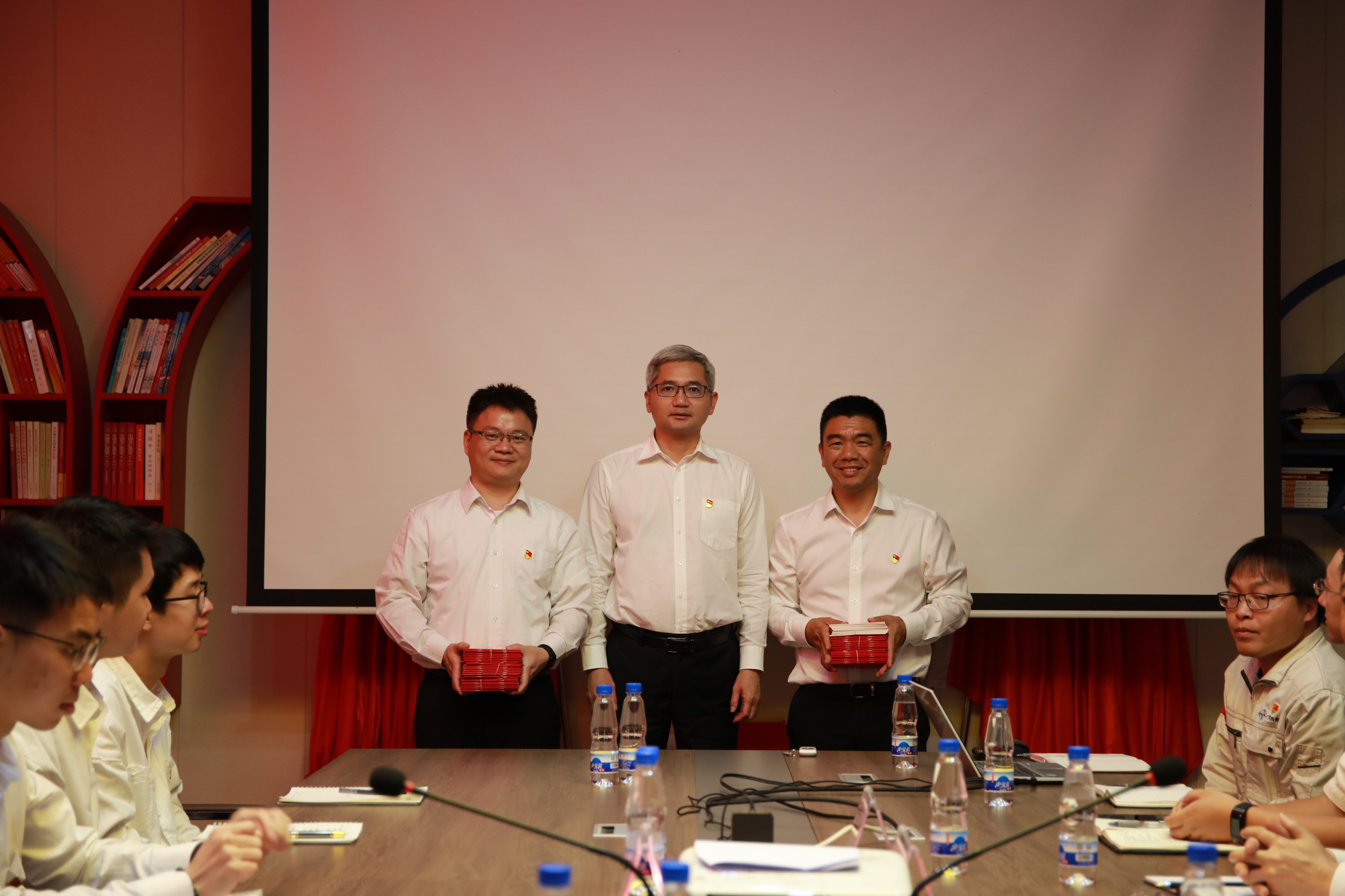 报告后,陈卓武副校长给双方共建单位代表赠送了新版《中国共产党章程》,勉励每一位共建支部党员加强对新党章的深入学习。