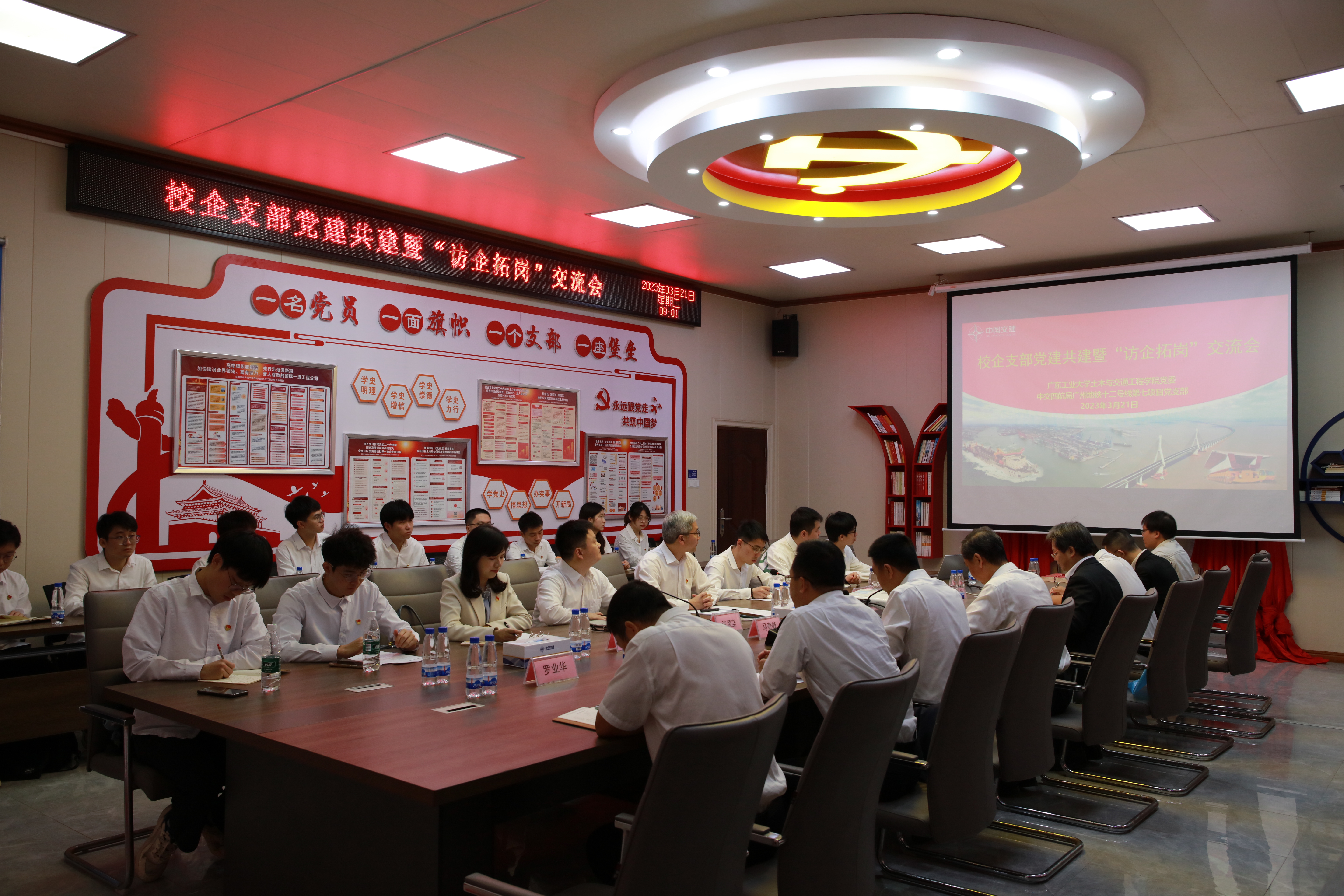 师生党员代表一行,前往中交第四航务工程局有限公司(以下简称“四航局”)广州地铁十二号线第七项目部,开展支部党建共建暨“访企拓岗”交流活动。