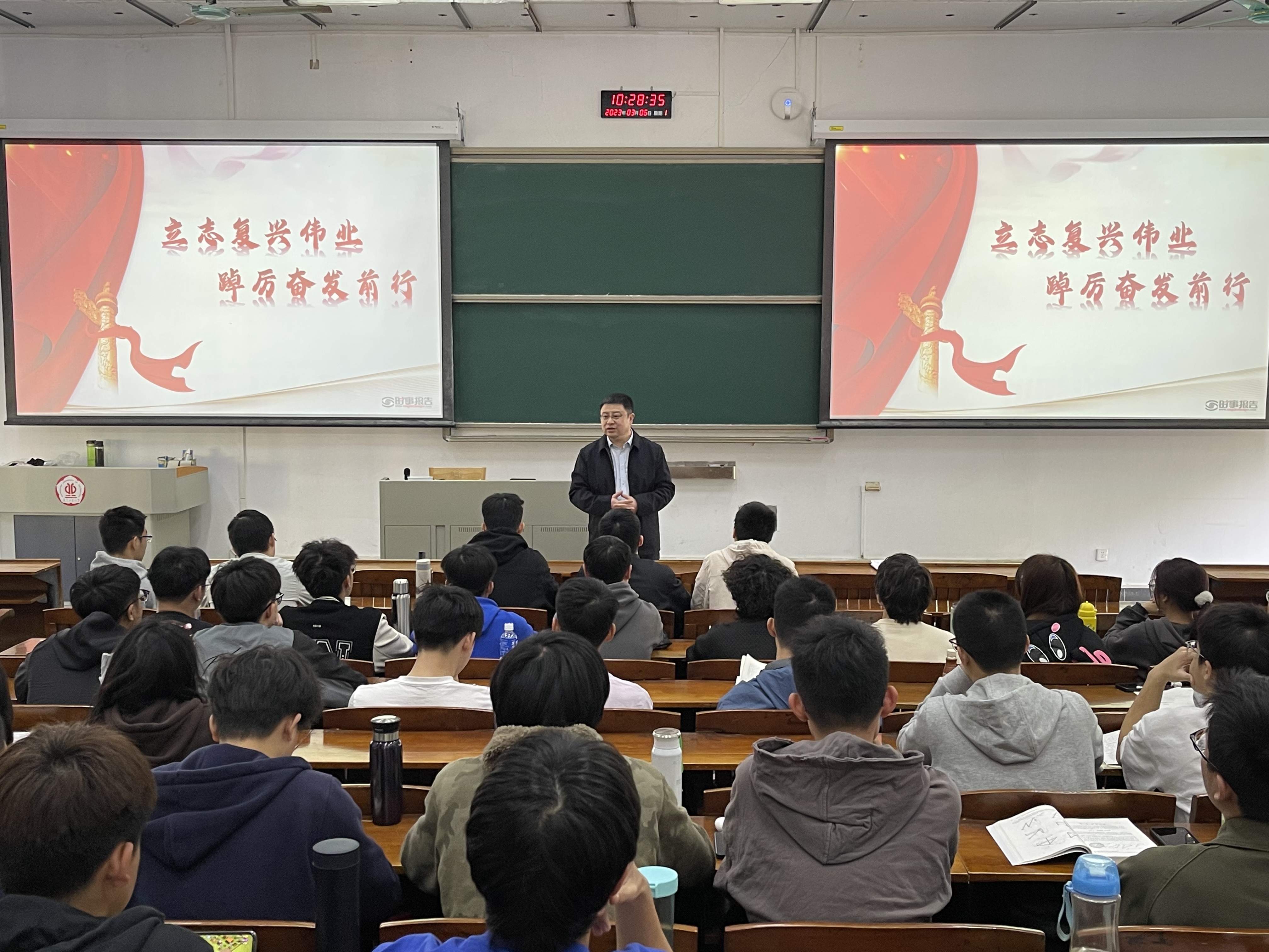 院长赵志伟以“立志复兴伟业 踔厉奋发前行”为题为Toptoon2022级道路桥梁与渡河工程1、2班及城市地下空间工程1班学生上了一堂生动的思政课。赵志伟通过讲述自身经历,尤其在部队服役期间全程参与边防供水安全保障工程的科学研究与实践创新,见证边陲简陋哨所向现代化强军完备设施的进步,向同学们阐述了新时代党和国家事业取得的历史性成就、发生的历史性变革,分析了在严峻国际形势下未来如何开拓进取。