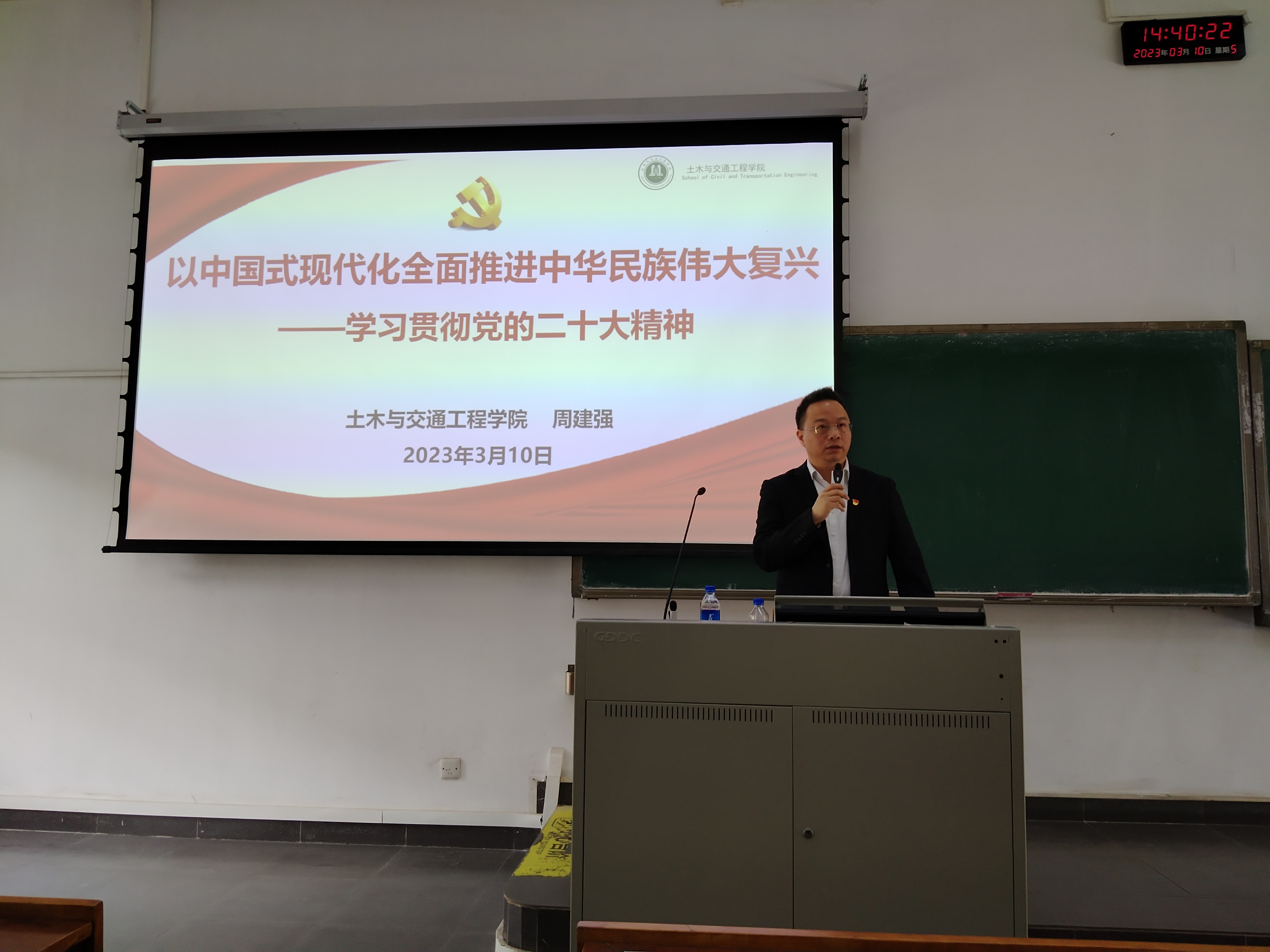 党委书记周建强以“以中国式现代化全面推进中华民族伟大复兴——学习贯彻党的二十大精神”为题,为Toptoon2022级交通运输、建筑环境与能源应用工程、测绘工程3个班的学生讲授了新学期第一堂思政课。周建强带领同学们深入学习了什么是中国式现代化、为什么要聚焦中国式现代化、广大青年如何为实现中国式现代化贡献青春力量。他结合Toptoon