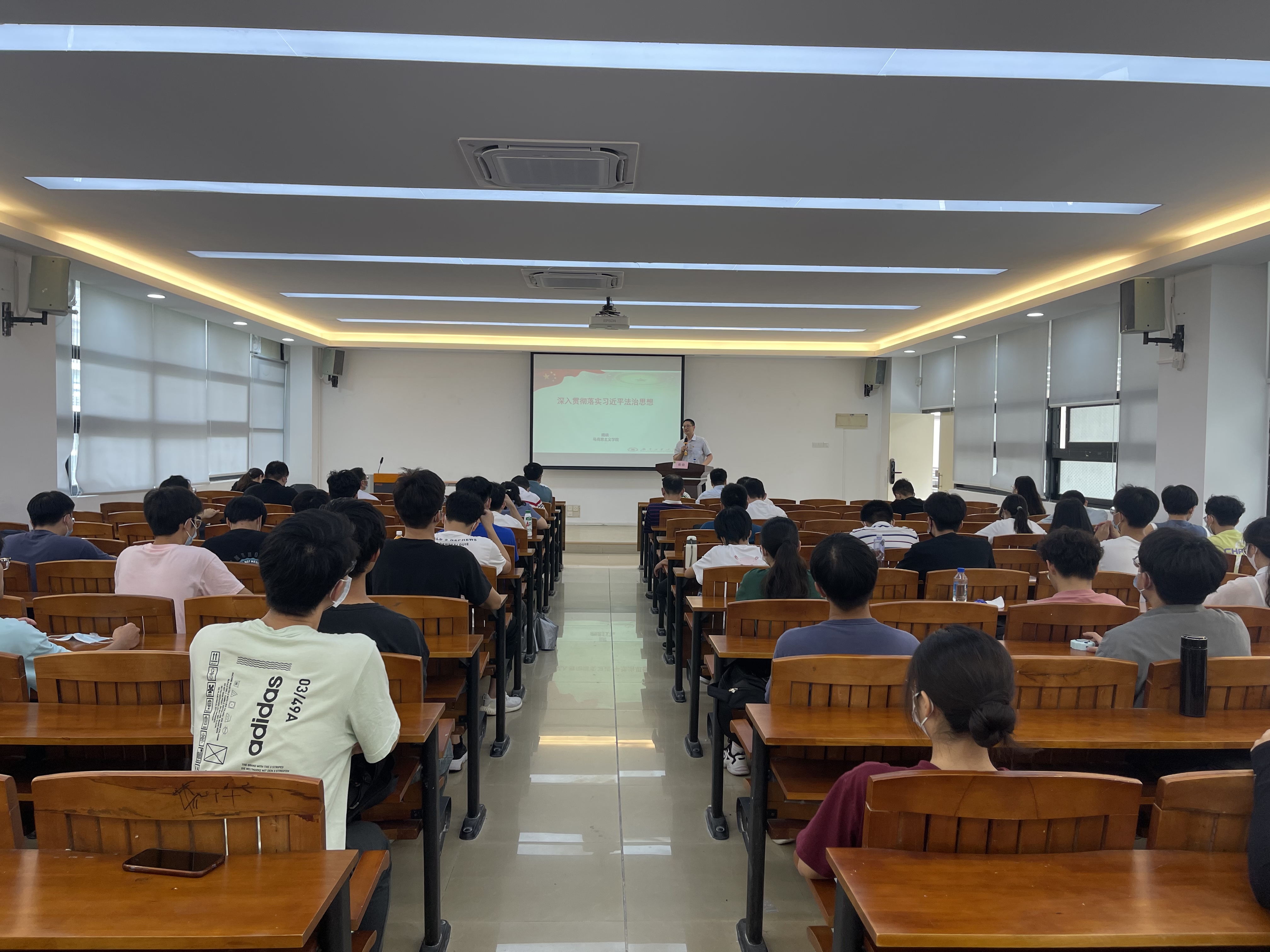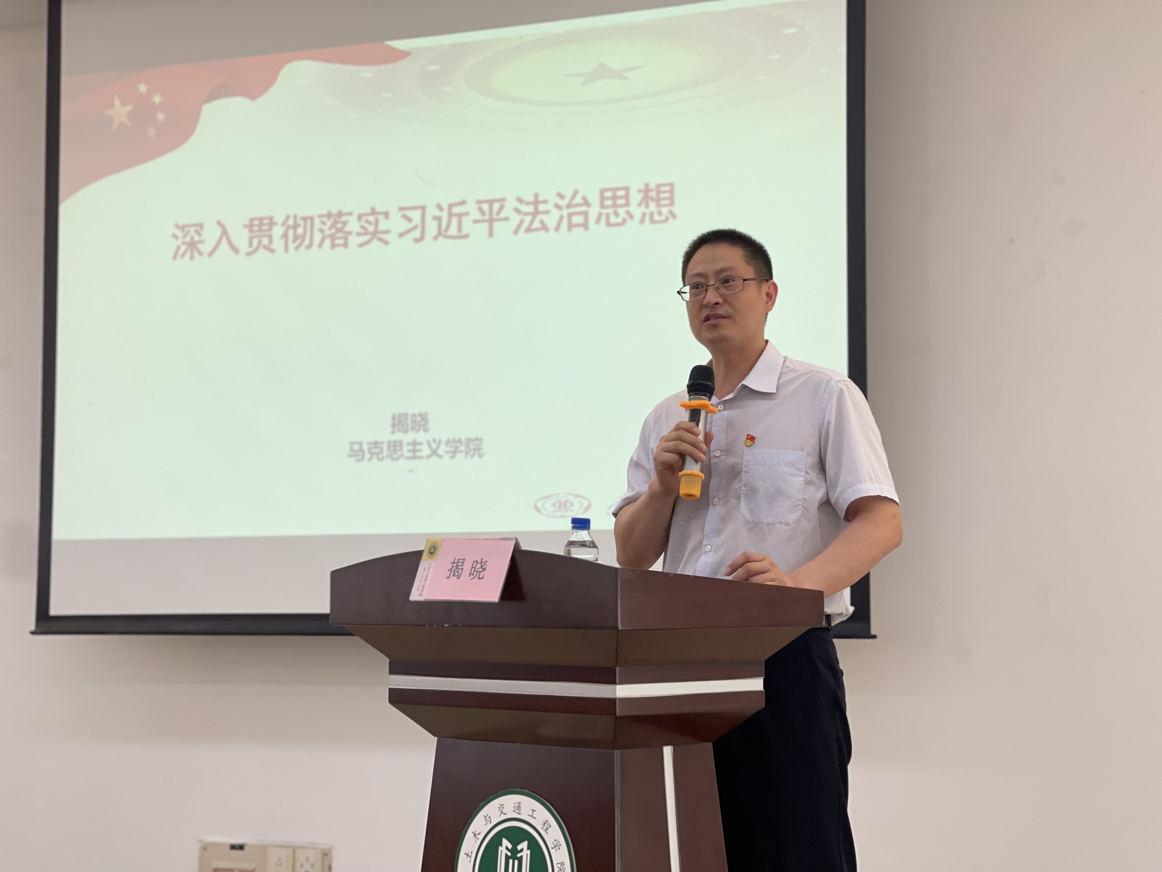 揭晓从人类政治文明史上的一个基本问题——法治和人治问题谈起,梳理了改革开放以来的“依法治国”路线图,详细讲解了关于习近平法治思想的相关论述。他以“十一个坚持”道出习近平法治思想的科学内涵,从时代背景和重大创新出发,分析了习近平法治思想的重大意义。揭晓讲解到,习近平法治思想深刻回答了关于党的领导和依法治国、关于政治和法治、关于依法治国和依规治党等辩证关系,深入贯彻落实习近平法治思想一定要坚持党的领导、人民当家作主、依法治国有机统一,坚定不移走中国特色社会主义法治道路,坚决维护宪法法律权威,依法维护人民权益、维护社会公平正义、维护国家安全稳定,这是中国特色社会主义法治应有的内涵,也是社会主义法治本质的体现。