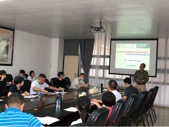最后,参会教师收看了教育部全国高等学校实验室安全线上培训会议视频,学习清华大学实验室管理处副处长艾德生对《高等学校实验室安全检查项目表(2022年)》条目解读。通过集体培训学习,参会教师明确了实验室安全管理的目标和任务,表示要积极在教书育人中切实融入实验室安全教育。