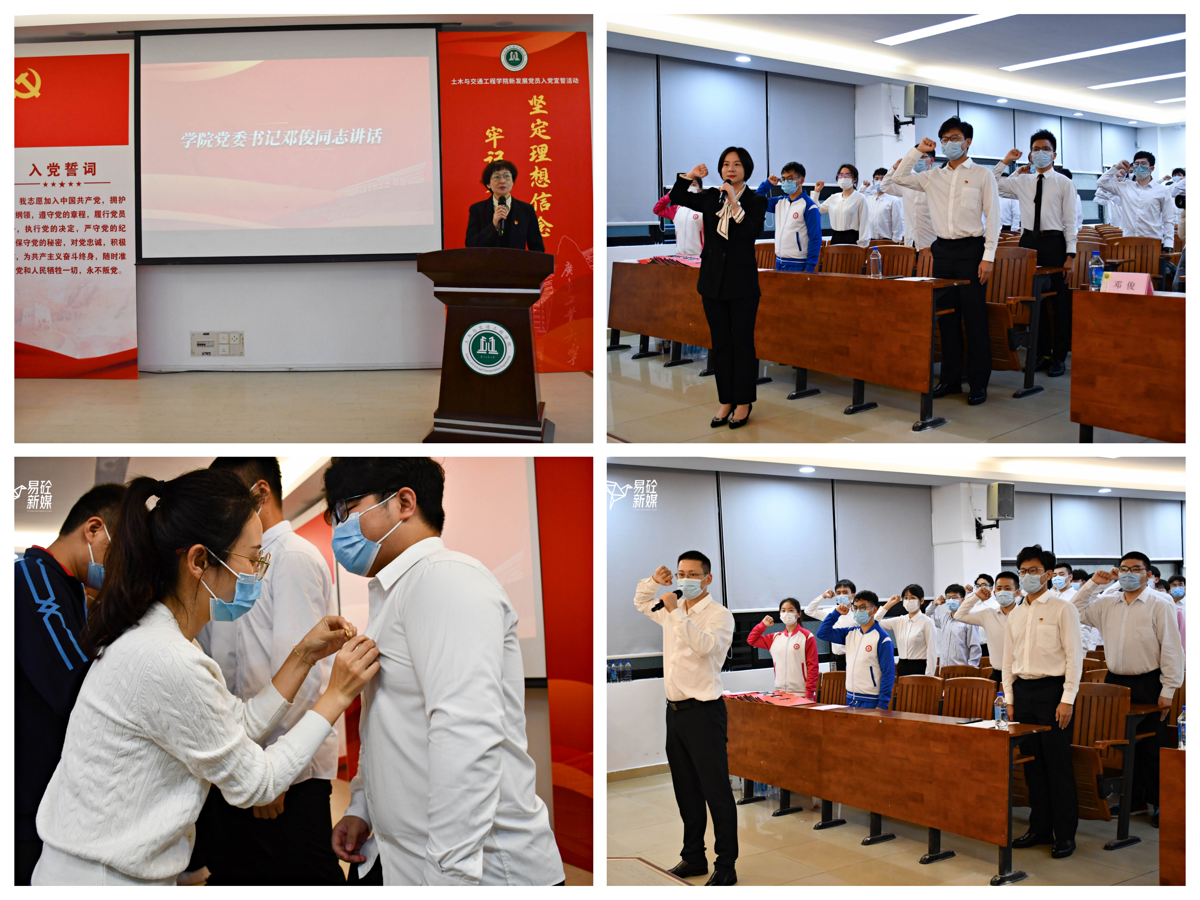 新党员在这里庄严宣誓,表达了为共产主义事业奋斗终身的决心,明天,全体学生党员将以坚定的理想信念、崭新的精神风貌、饱满的学习热情、坚强的党员意志投入到践行党的宗旨的伟大实践中去。(图:刘懿;文:刘思利)