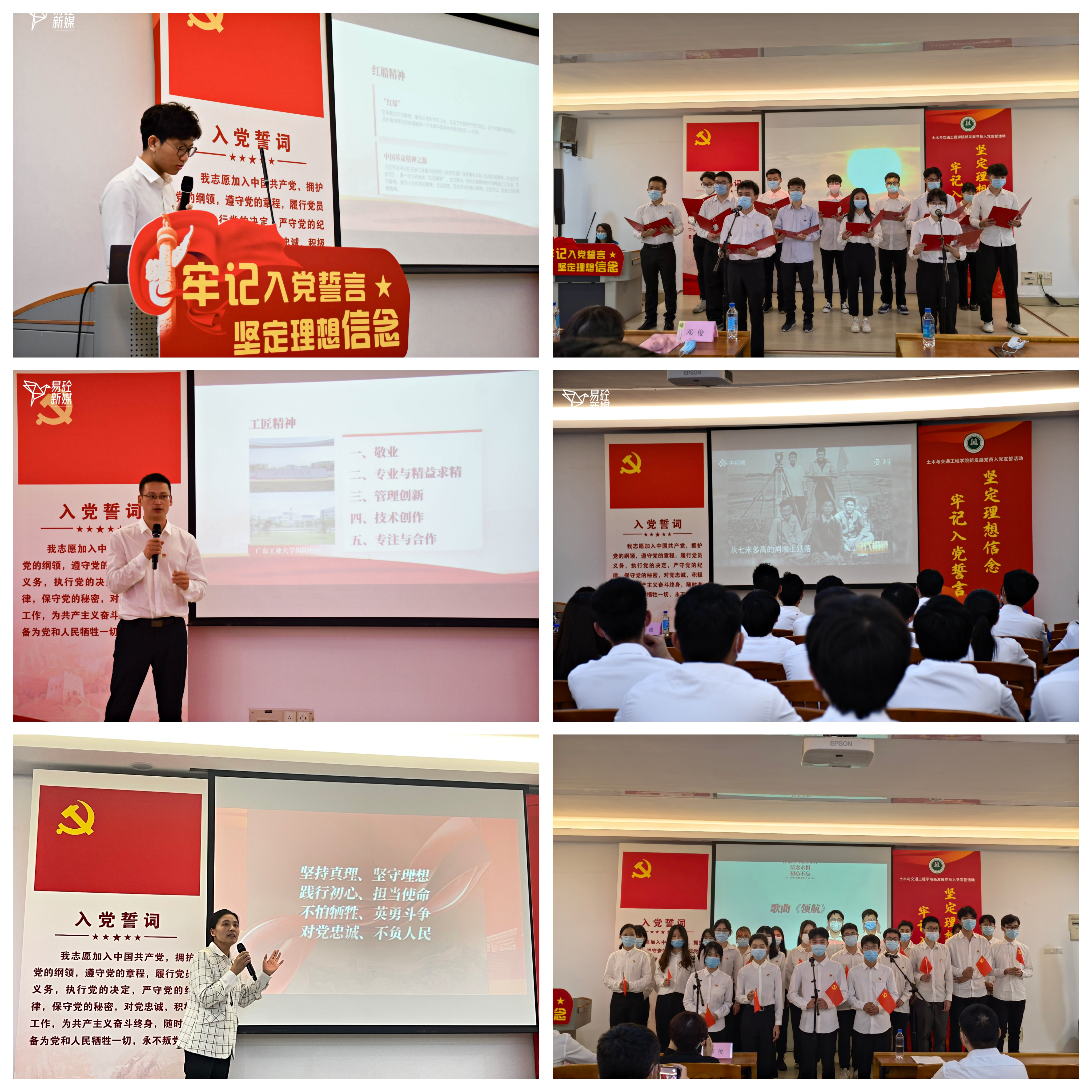 在“中国共产党人的精神谱系我来讲”环节,土木工程本科生第二党支部赵明鑫宣讲“红船精神”,新党员代表齐声朗诵《红船,从南湖起航》;校友谢伟锋宣讲了“工匠精神”,在场党员一同观看了《时代楷模——东深供水工程建设者群体的先进事迹》中的院友事迹;随后,道桥与交通运输系教工党支部书记王小霞宣讲了“伟大建党精神”,新党员代表合唱红歌《领航》,将活动现场的气氛推向高潮。