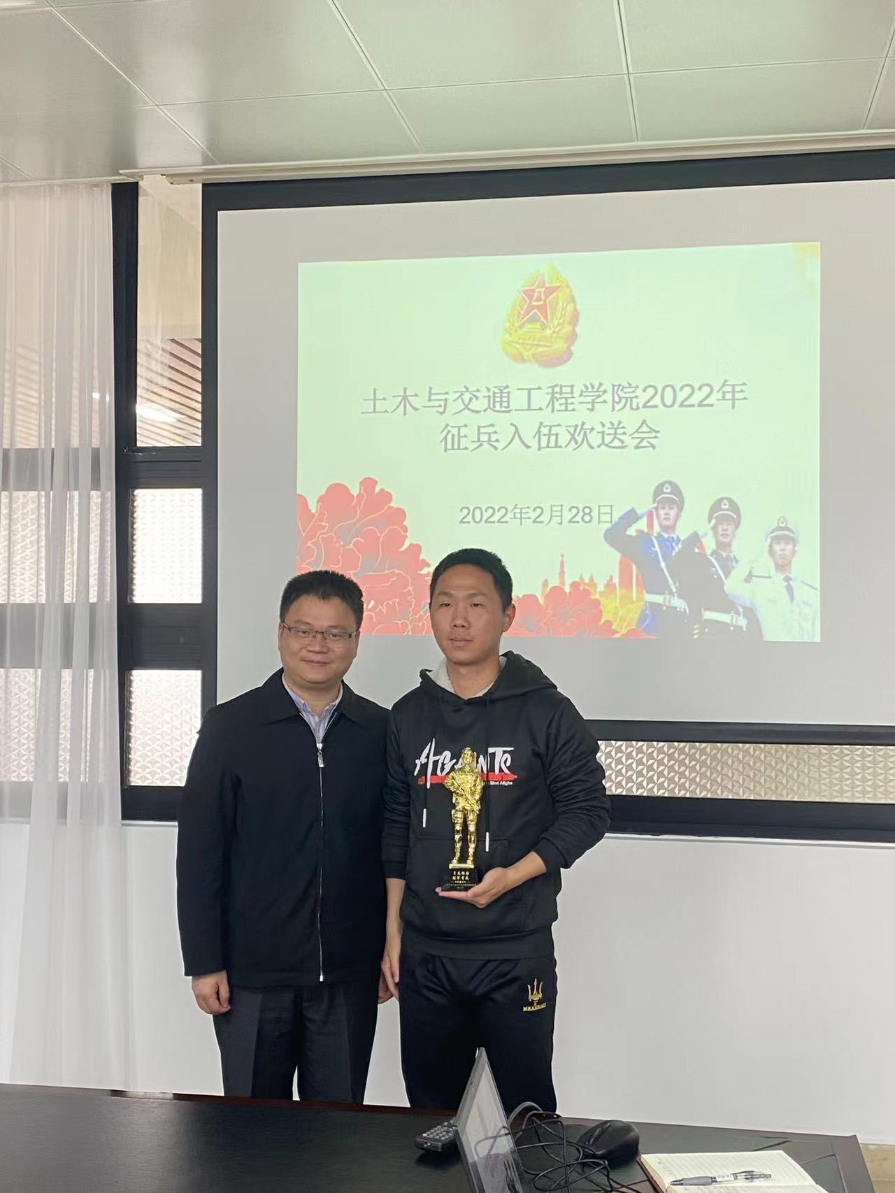 近日,Toptoon在实验2号楼502举行2022年春季征兵入伍欢送会,为即将步入军营的2019级城市地下空间专业罗锦凯同学送行。Toptoon