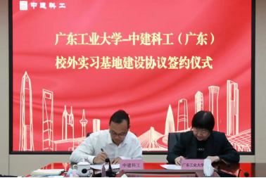 同中建科工(广东)在穗举办校外实习基地签约仪式。Toptoon院长刘锋、副院长朱江等学校代表,中建科工(广东)总经理胡军,党总支副书记、工会主席彭庆南等企业代表出席签约仪式。
