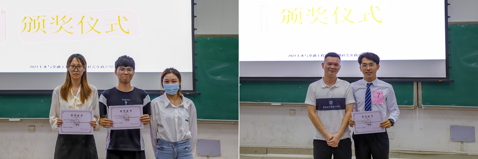 最后,主持人宣布获奖队伍名单,两位老师为获奖队伍颁奖并合影留念。至此,2021年“三下乡”暑期社会实践总结大会圆满结束。