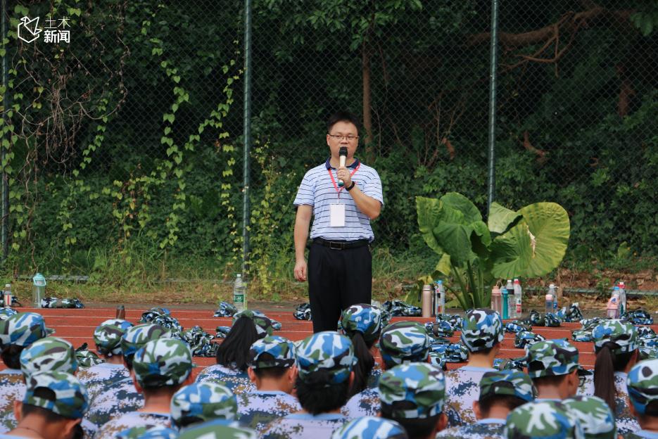 ,希望同学们可以继承师兄师姐的精神,发扬光大土木行业,为国家的基建作出贡献,为未来的工作做准备。并强调军训是为了磨炼精神,希望同学们在接下来的军训中要守时、守纪、互相影响和监督,并且要求同学们注重科学的作息安排,养成一个好习惯,有利于未来的学习与生活。