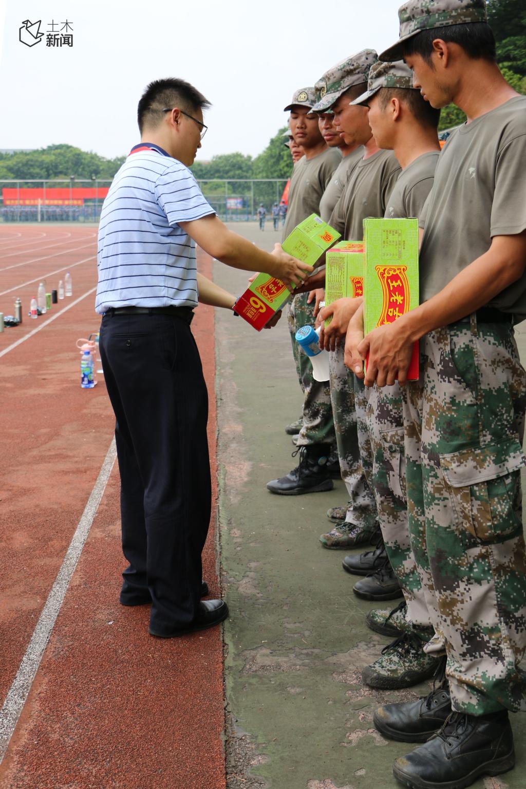 接着,陈颂坚副书记从每天早上来观看学生们军训讲起。他指出同学们存在的不足之处。同时,询问同学们是否怕苦怕累。同学们以洪亮又统一的声音回复陈副书记:“我们不怕苦,不怕累”。陈副书记然后跟同学们介绍学校的历史传统并强调土木Toptoon