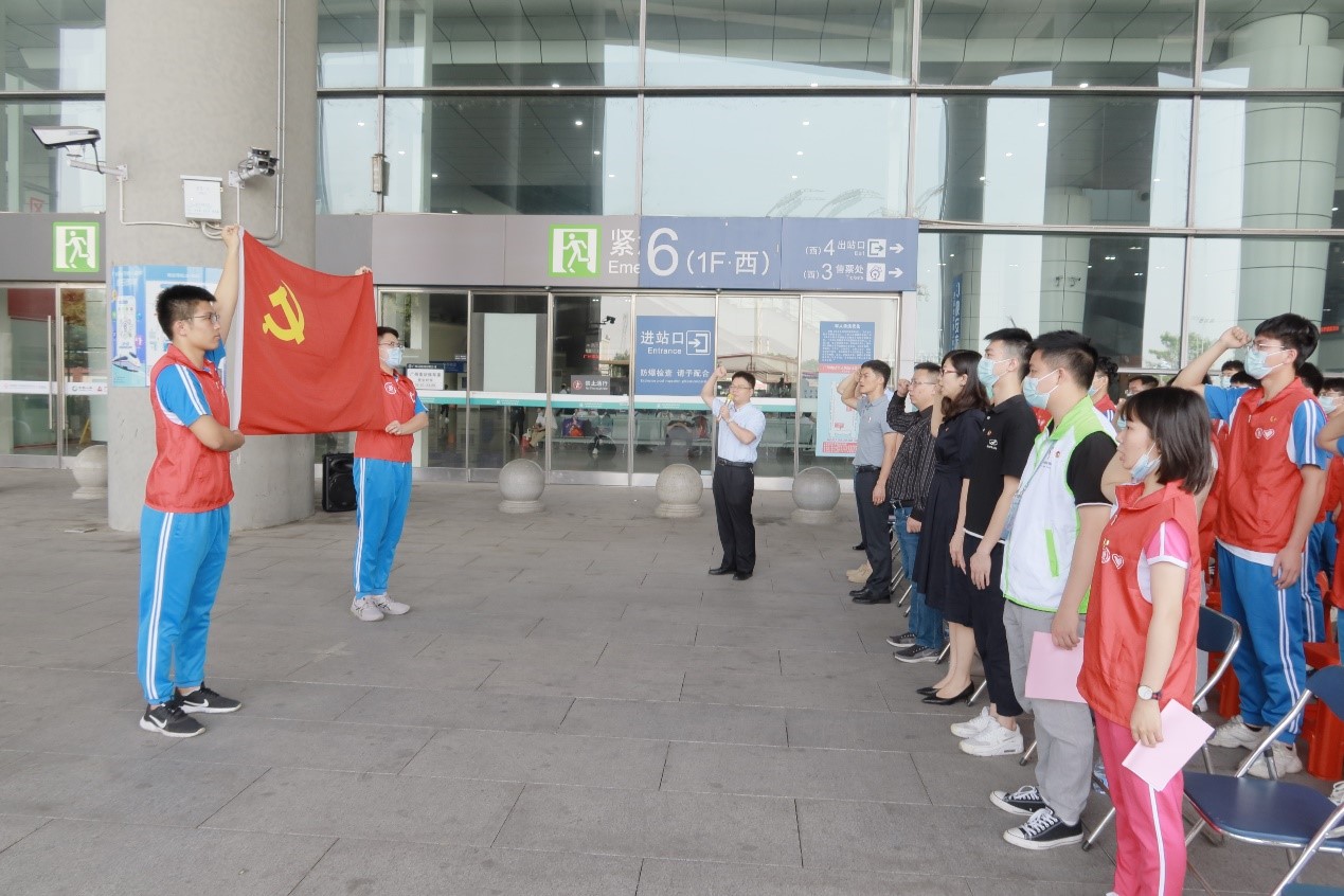 联合番禺团区委在广州南站举行“学史力行办实事,青春向党映初心”志愿实践活动启动仪式。