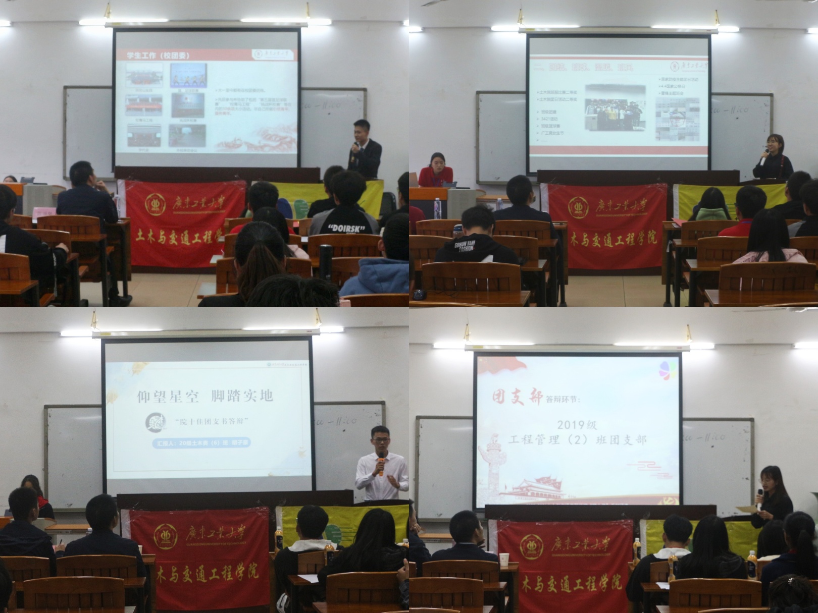 本次评选共有四个项目,分别是“十佳共青团干部”、“十佳共青团员”、“十佳团支部”、“十佳团支书”评选。在主持人简单介绍评分规则并宣布了筛选公示阶段考核评价前十名的名单后,答辩环节正式开始。参评选手们依次对自身的思想建设情况、工作情况、取得的成绩等进行了总结和汇报。其中,十佳团干候选人陈旭同学提到,作为一名优秀的学生干部,要严于律己,每天追寻进步,自觉发挥先锋模范作用。十佳团员候选人符音韵同学认为,“站岗一分钟,尽职六十秒”,无论担任什么职位,都应该坚持做到最好。十佳团支书候选人方肯同学分享了作为团支书的经验和收获,同时她认为自己参加过的一系列活动都促使着她奉献力量,赛出自信,战出风采。十佳团支部候选集体19级工程管理2班副团支书韦映霞同学表示,要抓好工作的落实与细节,调动同学们的积极性,努力建设成为学习型、志愿型的团支部。