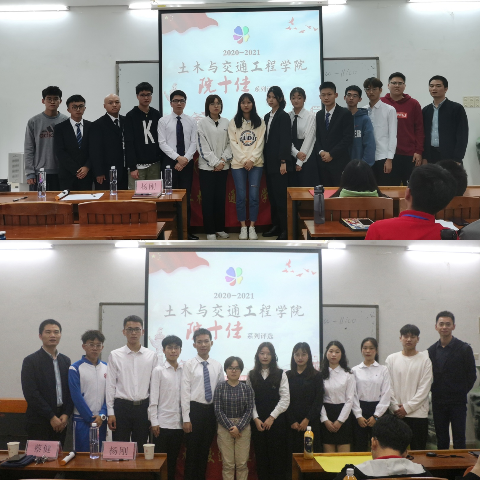 经过紧张而又精彩的答辩,评选结果揭晓,主持人宣读了获奖名单。随后,全体获奖选手与评委老师上台合影留念,至此,本次院十佳评选答辩与表彰大会圆满结束。(文:黄健、林康乔、杨刚 图:林嘉伟、张栩滔)