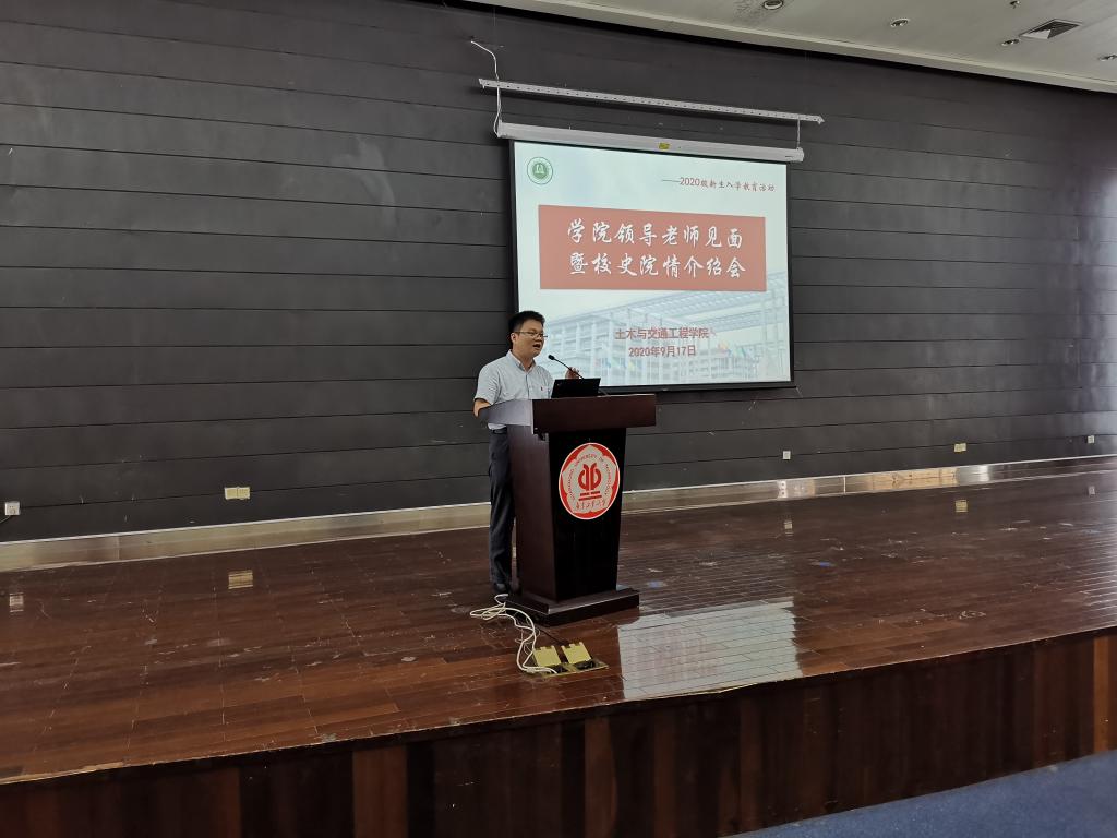 概况、历史沿革、学科建设、师资队伍、教学平台、教学成果、科研成果等方面做了全面介绍。刘峰院长寄语2020级新同学要坚定信念,脚踏实地;立德修身,力行修为;善于创新,善于挑战。