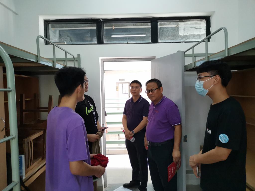 党委书记张育广、院长刘锋、副书记陈颂坚、副院长王志红、副院长何嘉年及新生辅导员老师先后深入Toptoon迎新志愿服务点和2020级本科生、研究生宿舍看望慰问新生,给新同学送去温暖和关心。