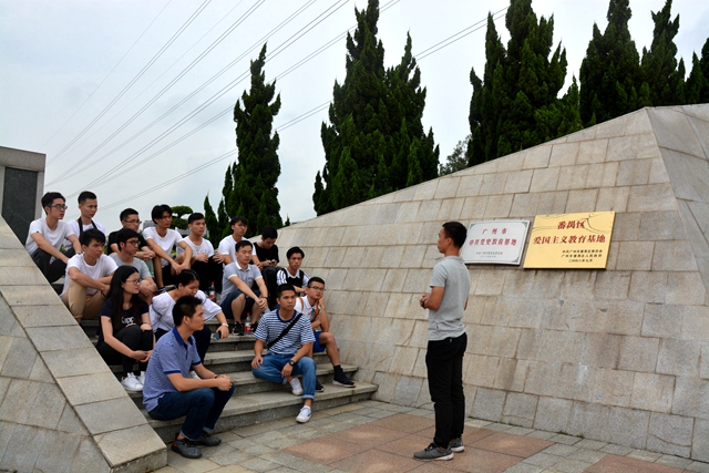 走进植地庄抗日战争烈士陵园,两旁的浮雕格外显眼,仿佛向人们诉说战火纷飞的残酷岁月。1944年7月26日,植地庄发生激烈抗日战斗,48位番禺人民抗日武装士兵壮烈牺牲。全体党员在浮雕中间的台阶上整齐列队,在鲜艳的党旗下,面向烈士纪念碑致敬缅怀。随后,香杰智同志和罗亮同志分别为大家介绍了植地庄战役的历史和先烈们的英雄故事,让大家了解这段历史,铭记这段历史,倡议同志们要刻苦学习,投身实践,珍惜这伟大的时代,不负青春年华,使自己成为有用之才,为国家的建设和发展作出自己的贡献。