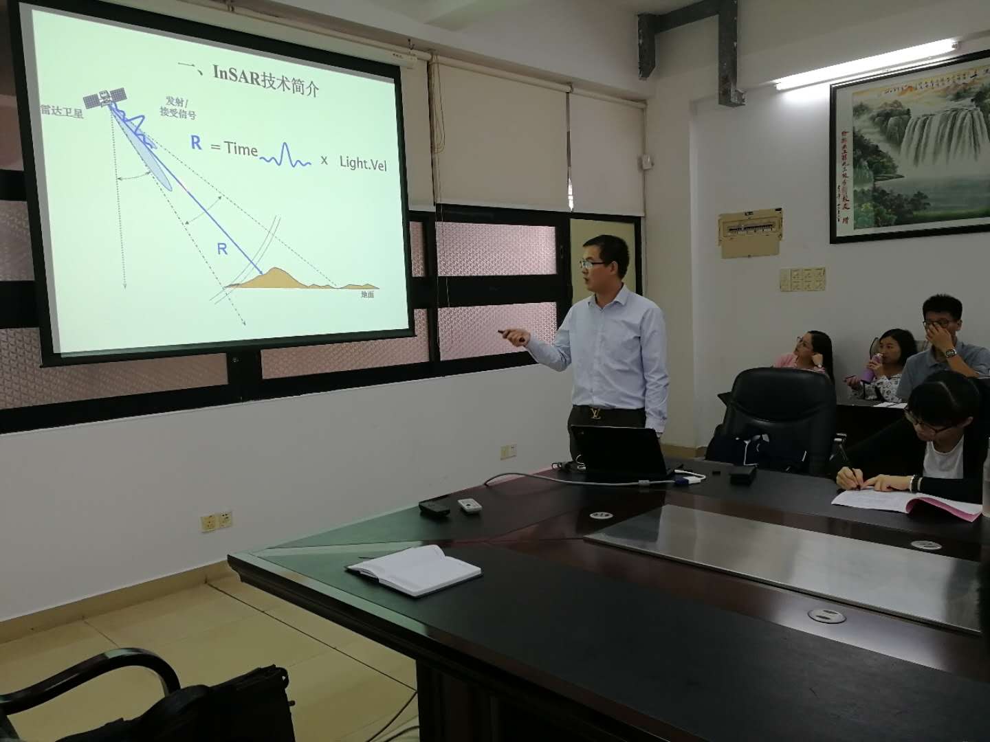 胡波副教授首先介绍了合成孔径雷达干涉测量(InSAR)技术的原理,然后以厦门、深圳为例详细介绍了课题组利用InSAR技术对大面积区域进行全面监测,搜索整个目标区域的地质灾害点,以及利用现有数据分析目标变化的趋势性信息,发现新的地质灾害区域,在潜在灾害的预警提供数据支持及为灾害治理效果的评定领域所做的研究。最后展望了InSAR技术的发展趋势和在城市健康化管理中的应用前景。讲座结束后胡波副教授与现场师生就InSAR技术与岩土工程结合探究地面下沉原因,永久散射点的设定,InSAR技术的稳定性和数据共享等问题等跟与会者进行了热烈讨论和交流。