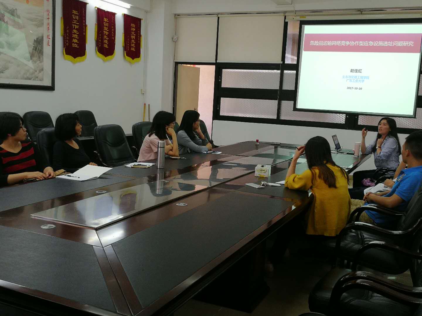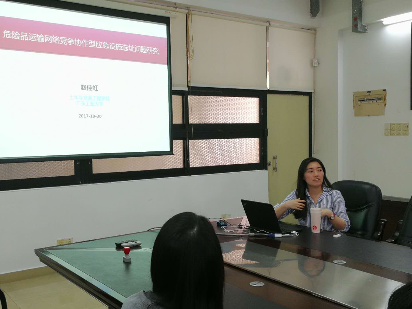 赵佳虹博士首先介绍了近年国内外危险品极易在储运过程中发生突发性事故研究现状,及危险品储运突发事故对城市交通运输网络中的居民、财产和环境造成有害影响。然后详细讲解了自己近年来借助数学模型、图形模拟、算法设计、计算机仿真和案例分析的方法,对基于城市路网构建的危险品运输网络进行风险评估、规避和控制决策优化,实现突发事故前的风险预防和事故后的风险控制领域所做的研究,最后展望了危险品运输网络竞争协作型应急领域研究空白和发展趋势。讲座结束赵佳虹博士与现场师生就模拟软件和编程方法,模型优化过程和参数求解,消防站及临时救助站的设置地点优化,合作开展路网合理化布设研究等问题等跟与会者进行了热烈讨论和交流。