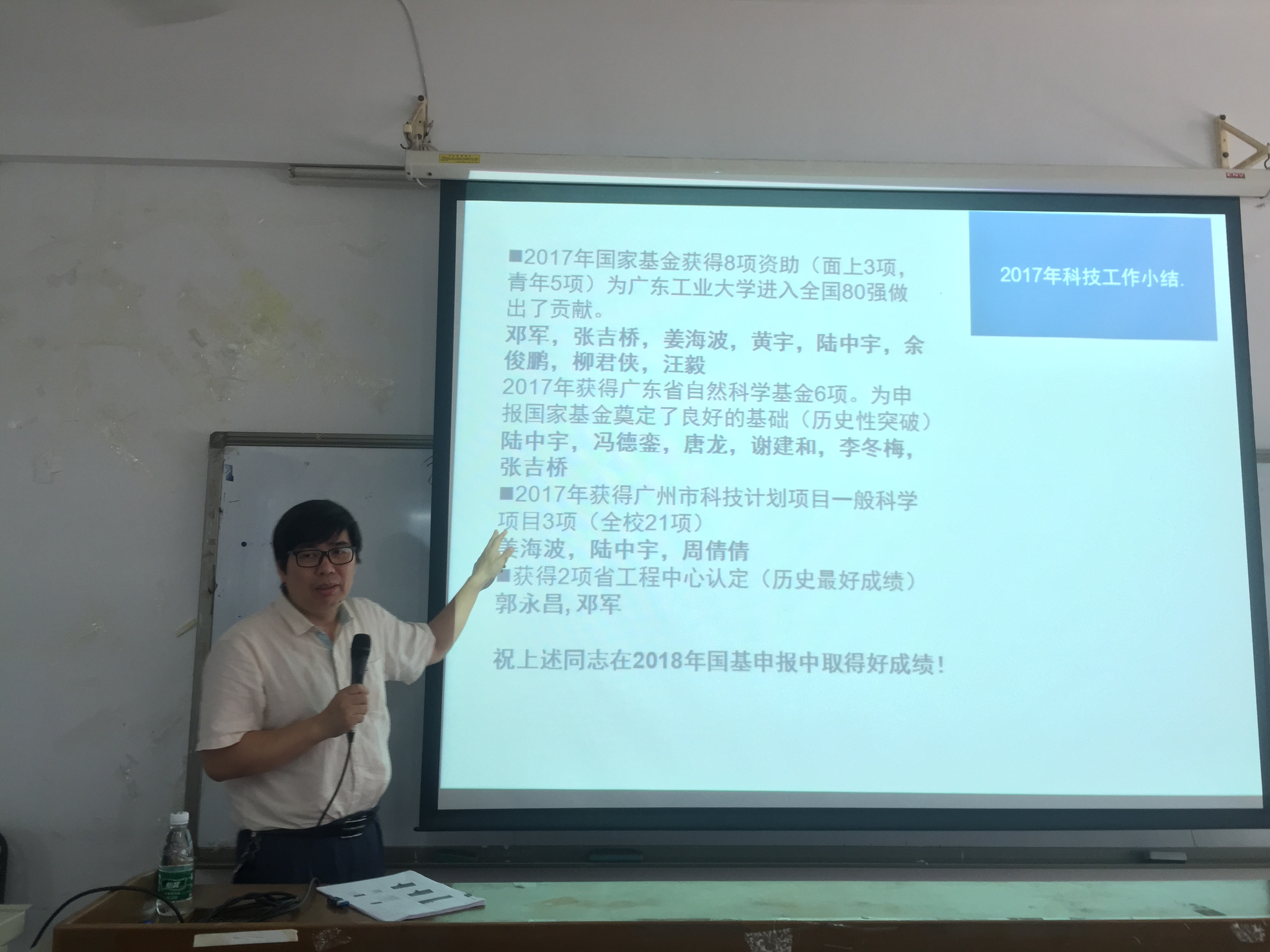 2017年科研工作进行了小结,对下一年国家自然科学基金申报工作进行了部署,并要求与会教师要认真准备,打好国家自然科学基金申报攻坚战。副院长史宏彦就2018年本科教学实验室建设项目计划申报工作做了部署和说明。