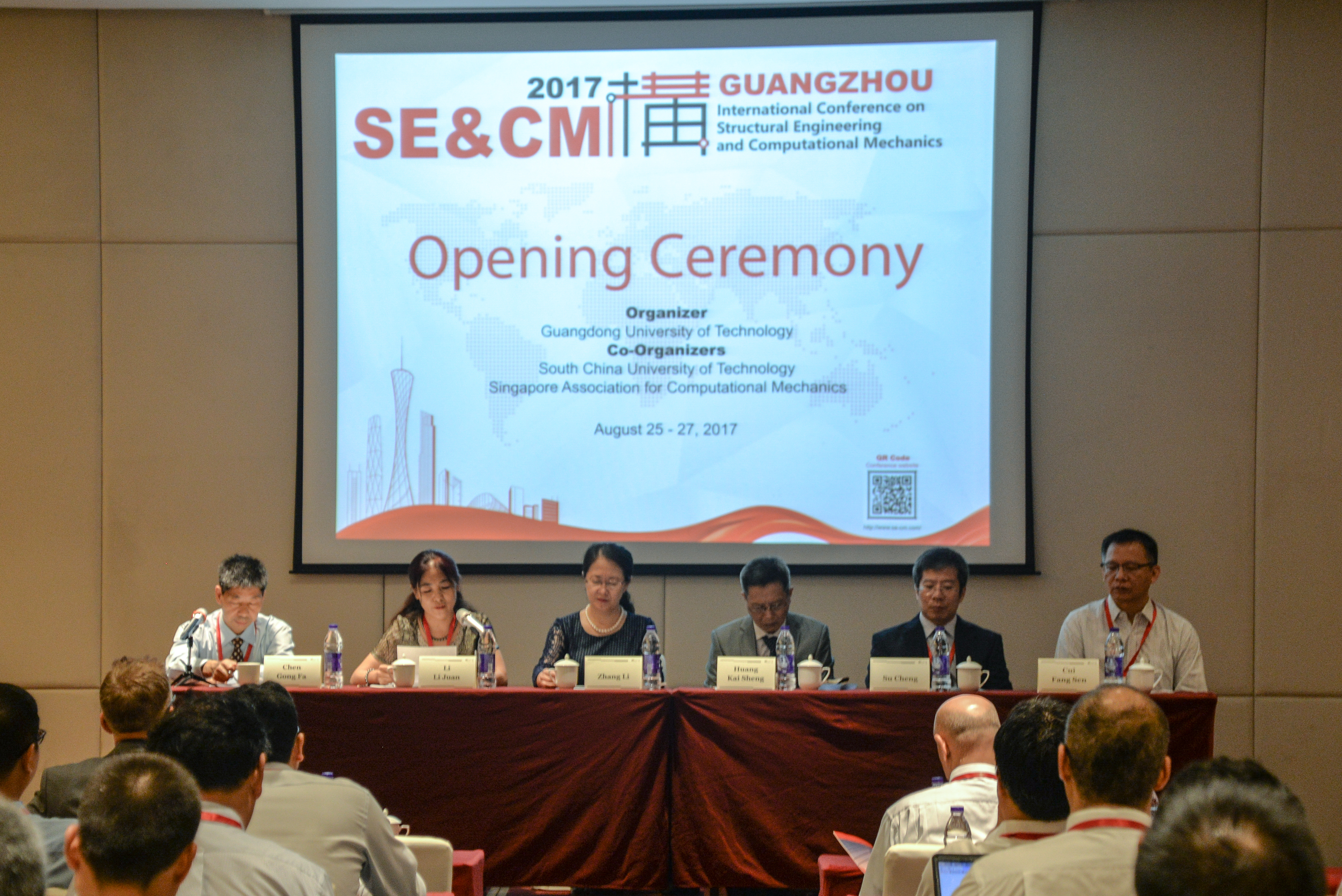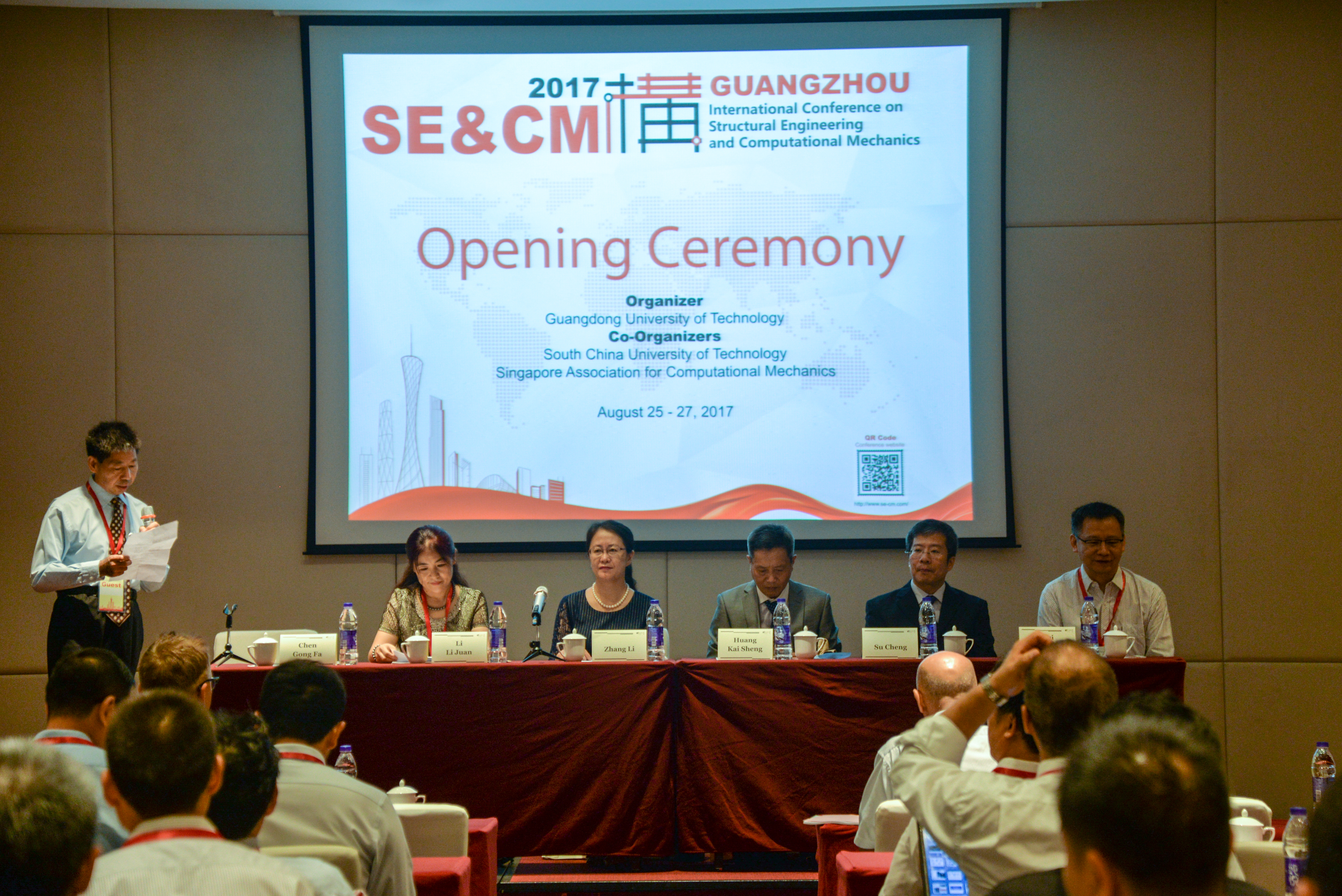 的发展,希望通过本次国际会议加强我校和国内外同行的交流合作,依托我校协同创新平台,共同开展前沿科学研究,推动创新人才培养,加速和推进结构工程与计算力学领域的发展。国际合作与交流处及港澳台事务办公室黄开胜处长、华南理工大学校长助理苏成教授以及新加坡力学协会主席崔芳森教授出席了开幕式,开幕式由我校百人特聘教授陈贡发主持。