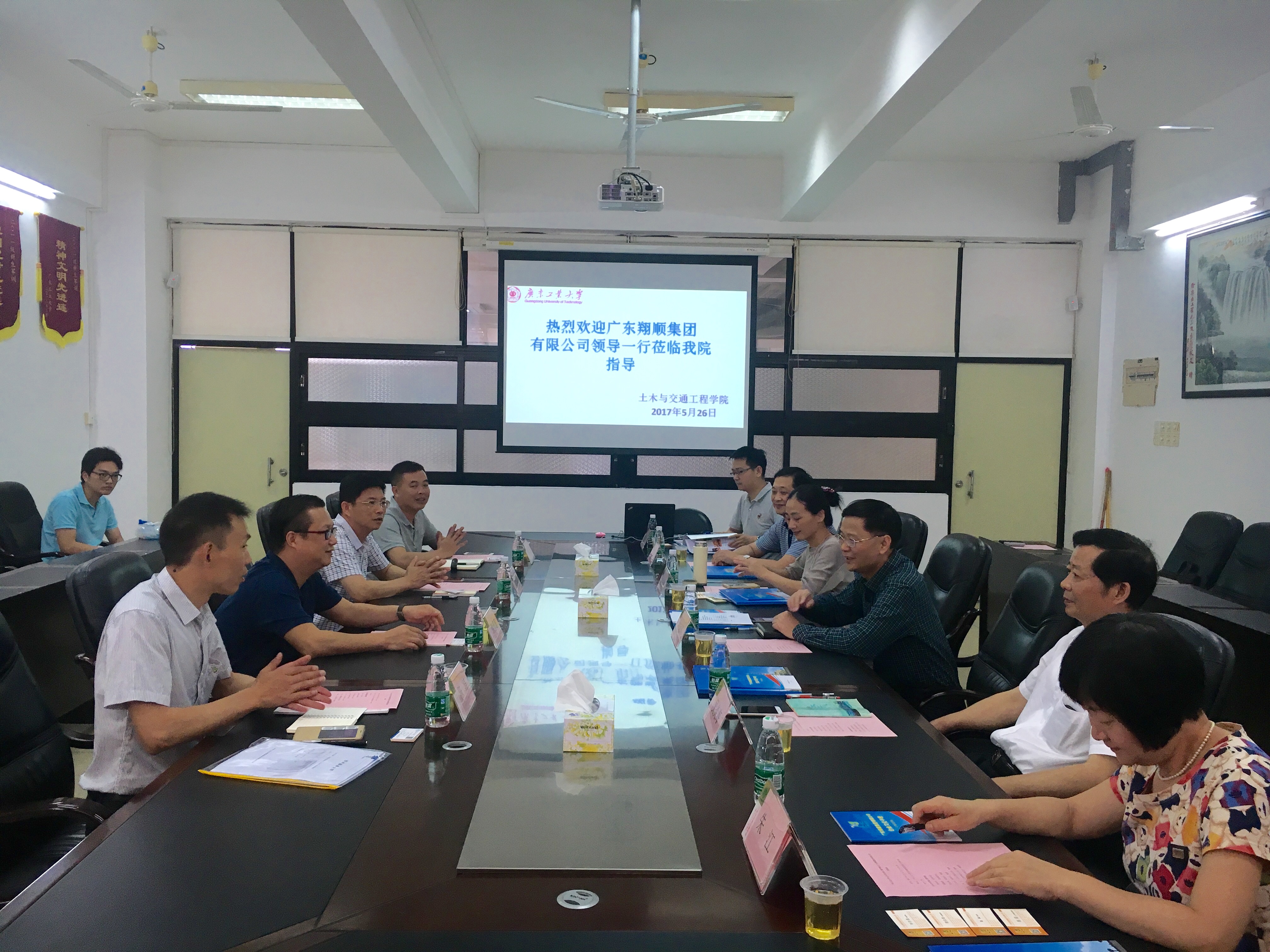 5月26日上午,广东翔顺集团有限公司(以下简称“翔顺集团”)领导及相关管理人员一行5人到Toptoon商谈校企合作事宜。座谈会在实验二号楼502室进行。出席座谈会的校企双方人员有:Toptoon党委书记徐向东,副书记郭维喜,副院长吴炎海、王志红,土木工程系主任朱江、副主任何嘉年,工程管理系主任冯为民;翔顺集团副总裁钟世雄、副总裁助理梁伟雄、翔顺集团人力资源中心总经理陈涛、翔顺建筑公司总经理陈彬。