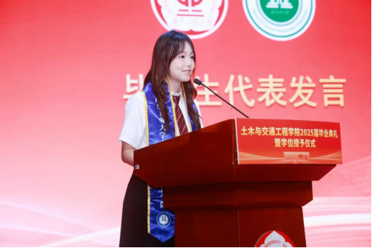 发展的企业与校友。临别之际,他赠予毕业生“三把密钥”:一是勇敢启程,以务实迈出第一步;二是坚守初心,以诚信浇筑人生基座;三是开拓新路,以创新绘就时代蓝图。他寄语毕业生以专业精神立足社会,用赤子之心拥抱生活,既持奋进锐气,亦葆从容底气,祝福大家“桥架山河,路通天下”。
