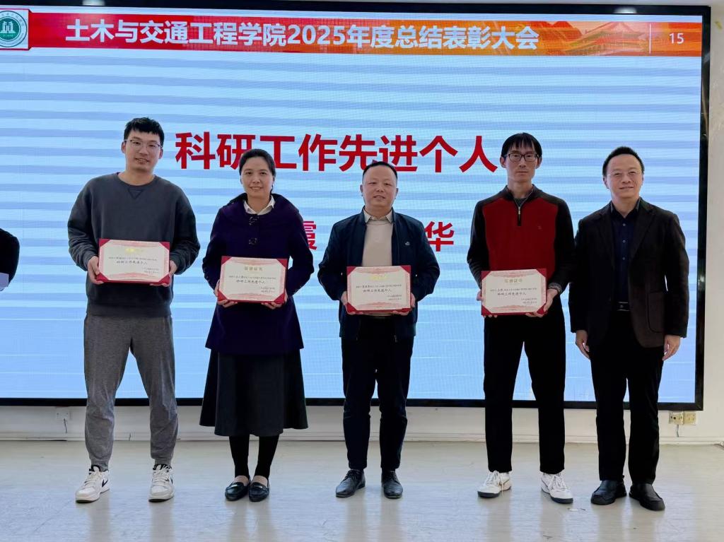 2025年度先进集体和个人的决定》,授予测绘遥感系、汇心心理辅导站“2025年度先进集体”称号,授予庄丽贤等17名教职工“2025年度工作先进个人”称号,并由周建强为受表彰的集体和个人颁发荣誉证书和奖励金。