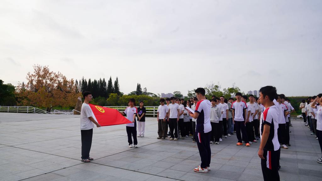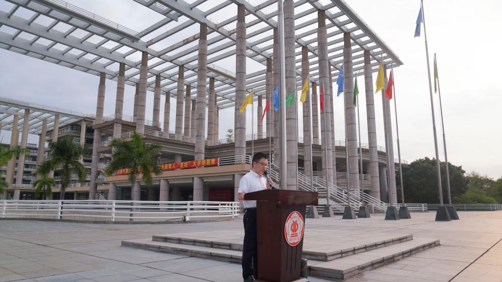 在校园正门广场举行“凝心聚力创一流 强国兴校勇担当”主题升旗仪式。学院党委副书记陈颂坚,党委学生工作部职业指导科科长张明,学院团委及辅导员代表以及2025级学生代表、新发展团员、入团积极分子参加仪式。