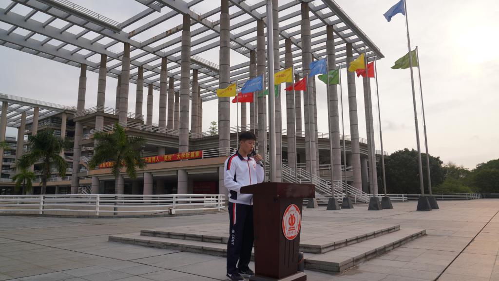 升旗仪式上,陈颂坚结合“十五五”规划开局与学校“双一流”创建攻坚之年的时代背景,以信心、责任、传承三个关键词,与全体师生共勉共进。他用学院专场招聘会数据与行业发展实际,坚定同学们对专业与行业的信心;以东深供水工程前辈校友的奋斗故事,勉励大家扛起工科青年的时代责任;以学院正在推进的学工管理模式改革实践,推动专业深耕与精神传承。他寄语同学们以严谨学风筑牢专业根基,以奋进姿态勇毅前行,为学校“双一流”创建、国家建造业高质量发展注入青春动能。