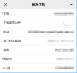 在【联系信息】页面,若手机号码、电子邮箱、QQ号码等发生变动,并请及时修改。如学生宿舍有变动或系统显示有错漏的,请用规范的“阿拉伯数字宿舍楼名+房间号”填写,如“东09-501”,“西12-509”,并请联系辅导员确认。