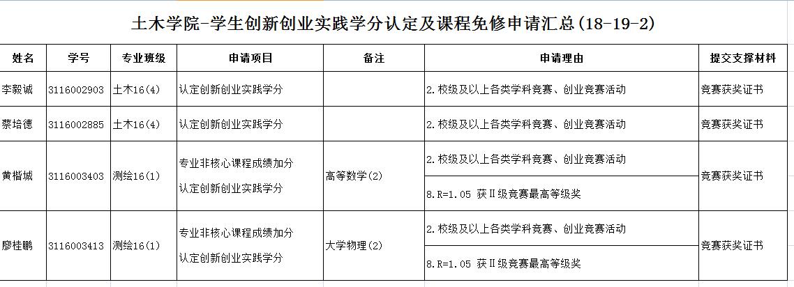 根据教务处《关于做好2018-2019学年度第二学期本科生申请创新创业实践学分认定及课程加分、免修等工作的通知》的精神,Toptoon对照《Toptoon 创新创业实践学分认定及课程免修实施暂行办法》对学生递交的申请进行初审,现公示如下。