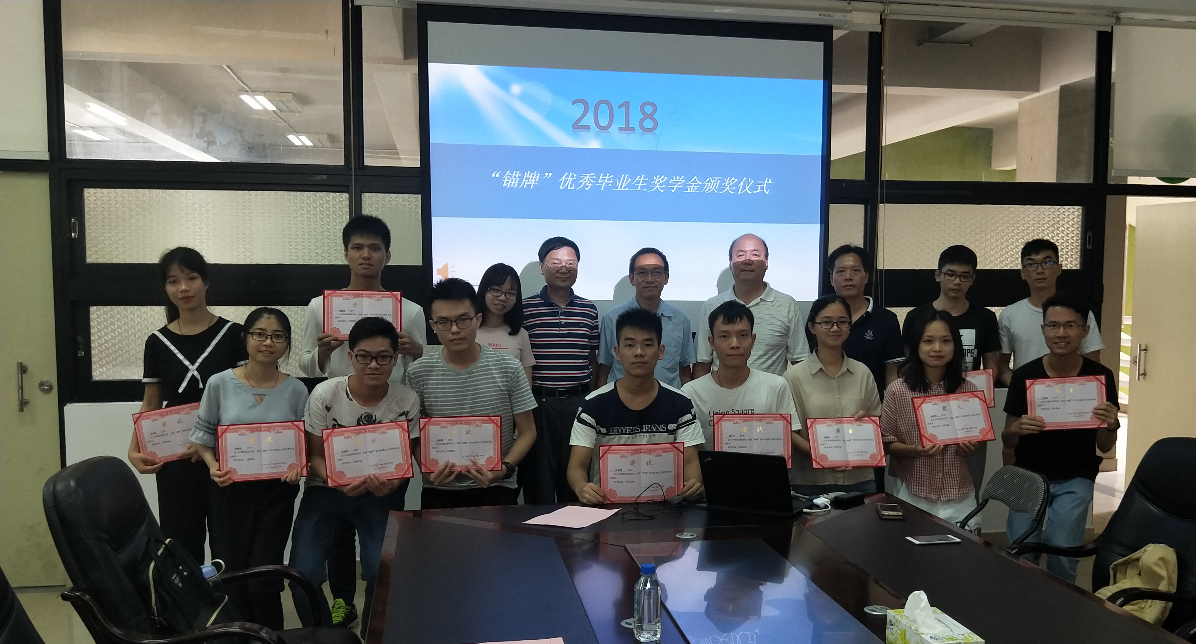 欢迎中山环宇实业有限公司曾镇国先生一行到来,“锚牌”奖学金设立近二十年来,企业奖励了一批又一批的优秀毕业生,十分感谢企业对Toptoon学子成长成才的关心与支持,其次,徐书记寄语2018届的毕业生同学,希望大家能够继承广工大的优良传统,在步入社会后,在工作岗位上能够勇于挑战自我,刻苦钻研,为社会发展贡献力量,同时,也不忘常回家看看。随后,郭维喜书记宣读了获奖名单。中山环宇实业有限公司的嘉宾和院领导分别为获奖学生颁奖并合影留念。颁奖结束后,获奖学生代表冯家辉发言。他回顾了自己四年走过的点点滴滴,本科科研经历直接影响了他的思考方式,如今也即将成为一名研究生,希望可以再次实现质的蜕变,为自己的职业道路创造更加坚实的路基。